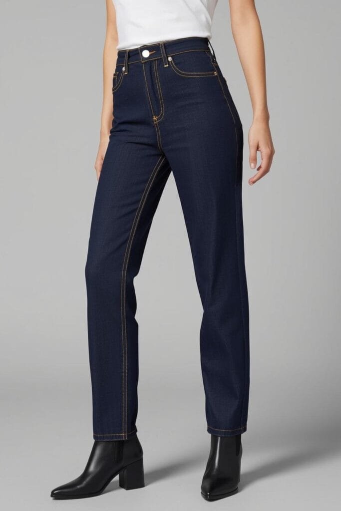 The structured cut and high rise of these jeans are known to organically accentuate the waist and elongate the legs.